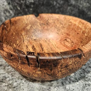"Hand-turned mahogany bowl with a sleek, straight-sided design and warm golden-brown tones accented by natural dark grain markings. Finish with a food-safe coatings, this bowl is perfect for serving salads, fruit, or snacks while also doubling as a unique decorative piece. Its clean lines and rich wood grain make it a timeless addition to any kitchen or dinning space." Size: 7.75 x 2.75 Inches Finish: Tung Oil and Bees Wax 1 of 1