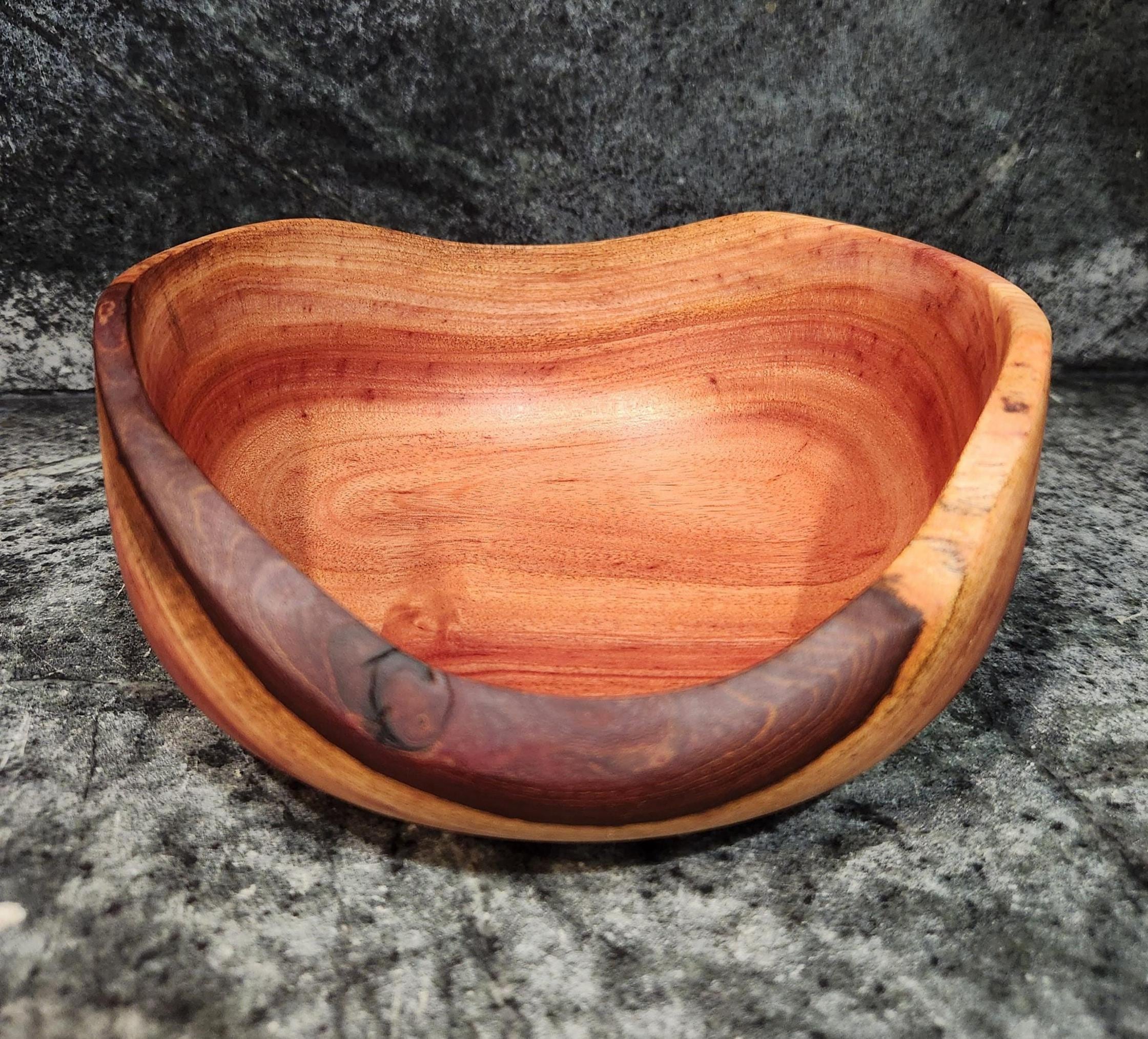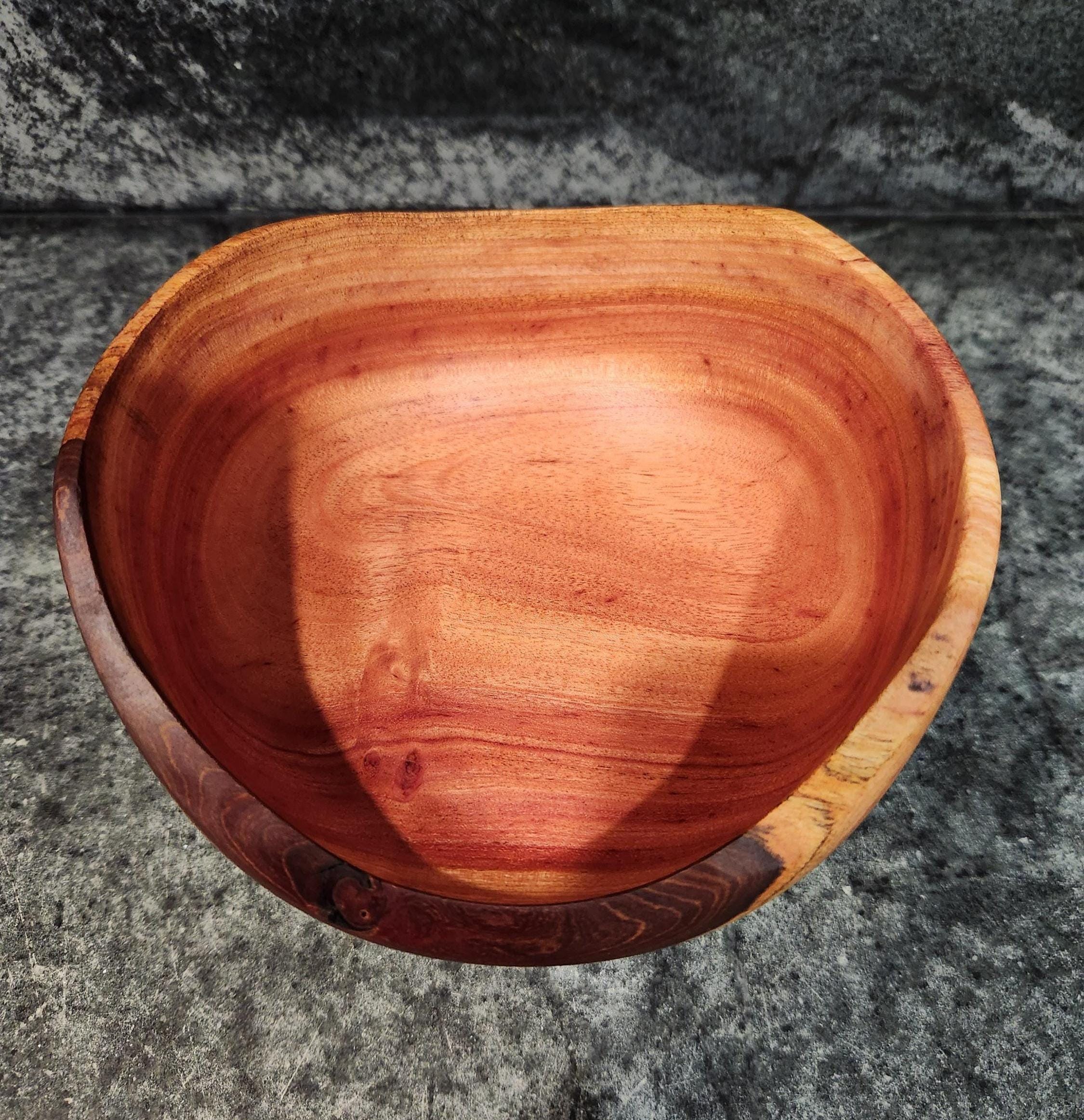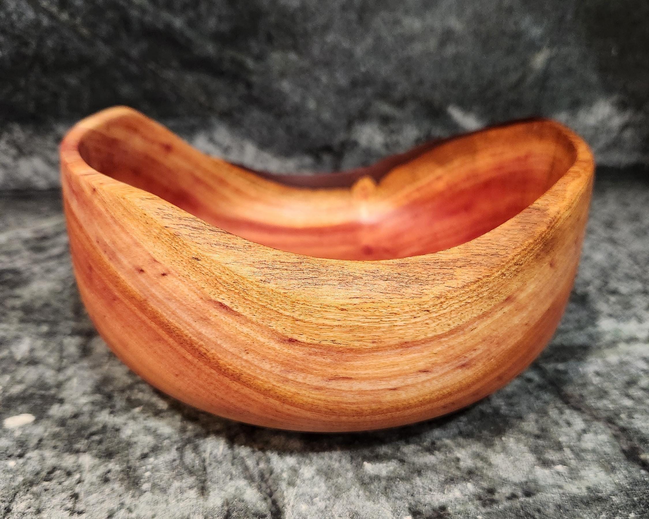 This handcrafted cedar bowl is one-of-a-kind, turned from a single piece of cedar wood. The smooth interior shows off the warm grain patterns, while the natural live edge adds a rustic and organic touch. Perfect as a centerpiece, serving bowl, or display piece, this bowl highlights the beauty of natural cedar with its rich color and unique character. Finish: Tung Oil and Bees Wax Size: 6.5 x 3 Inches 1 of 1