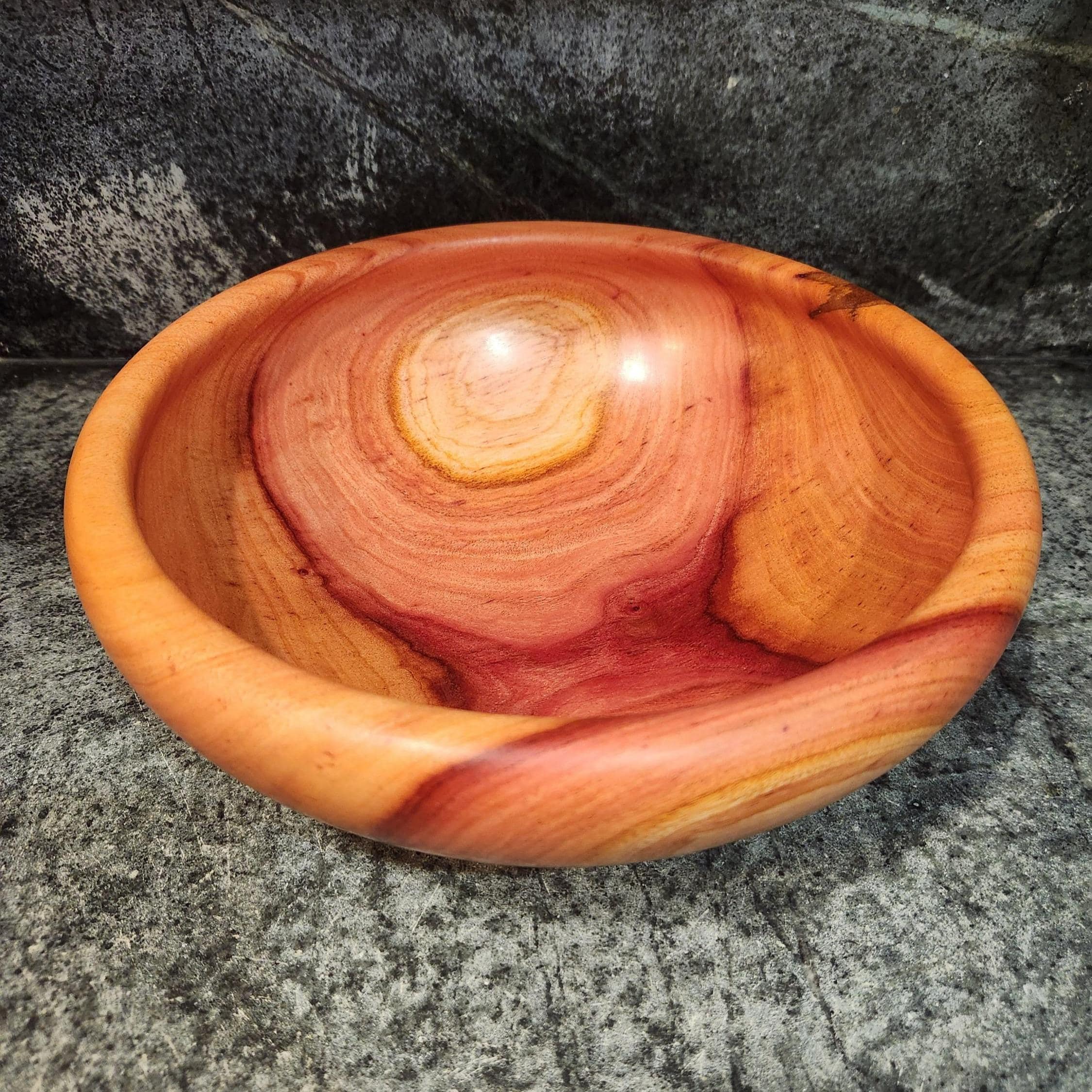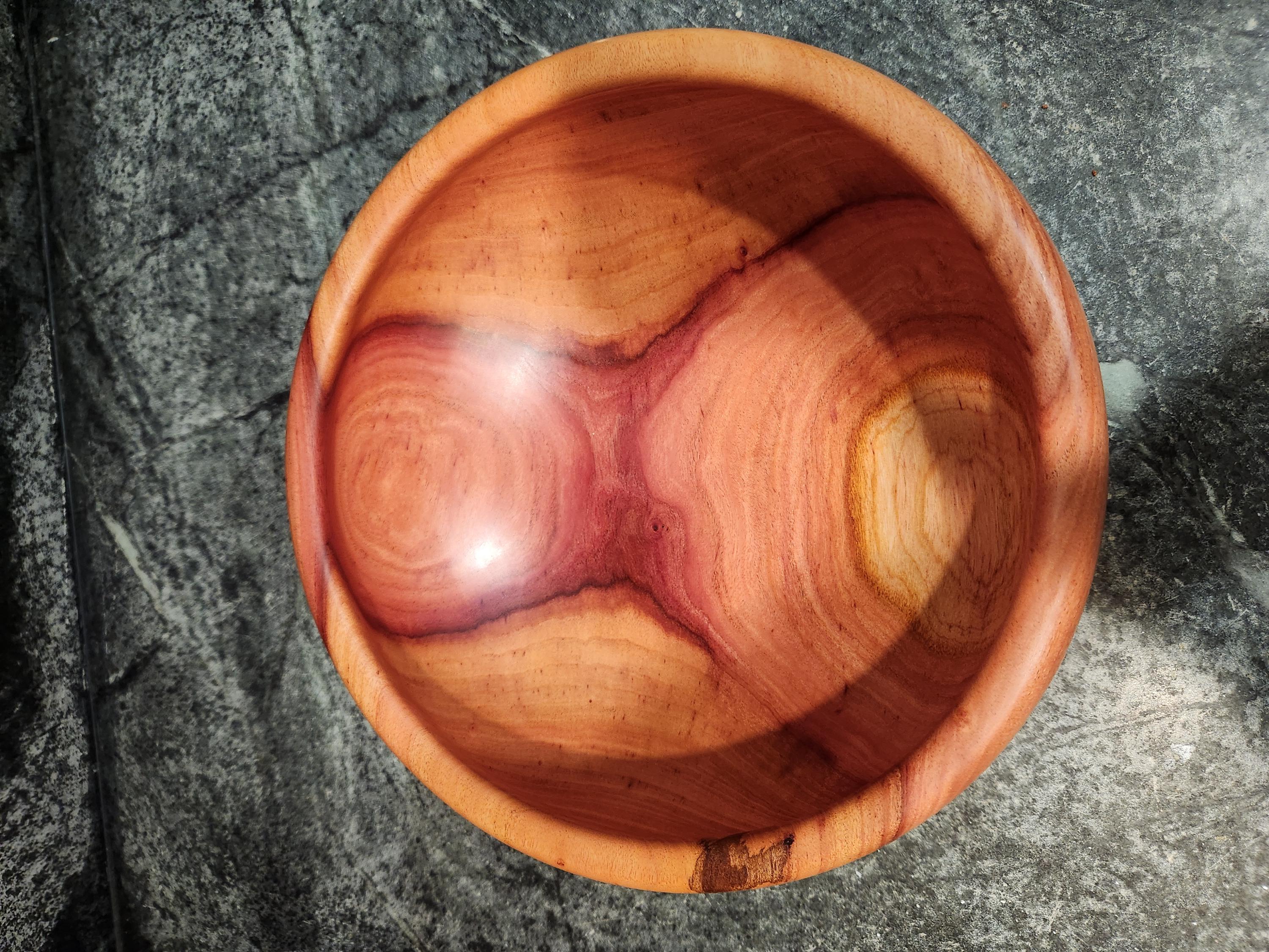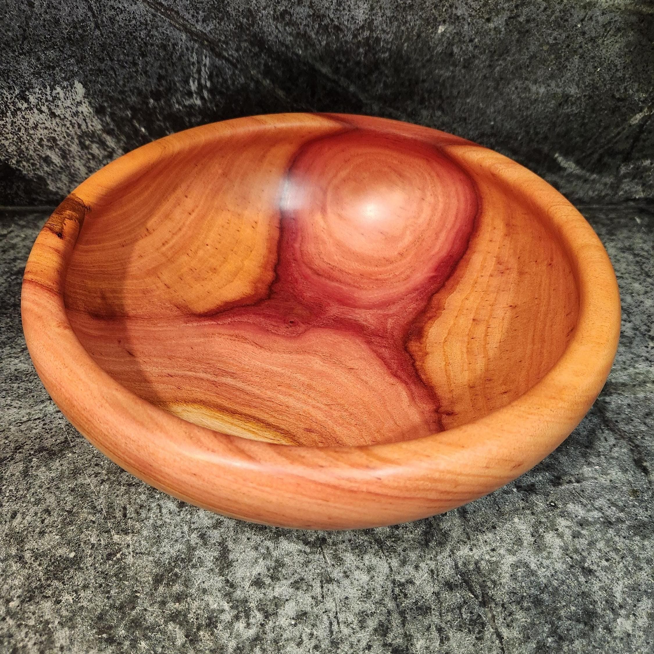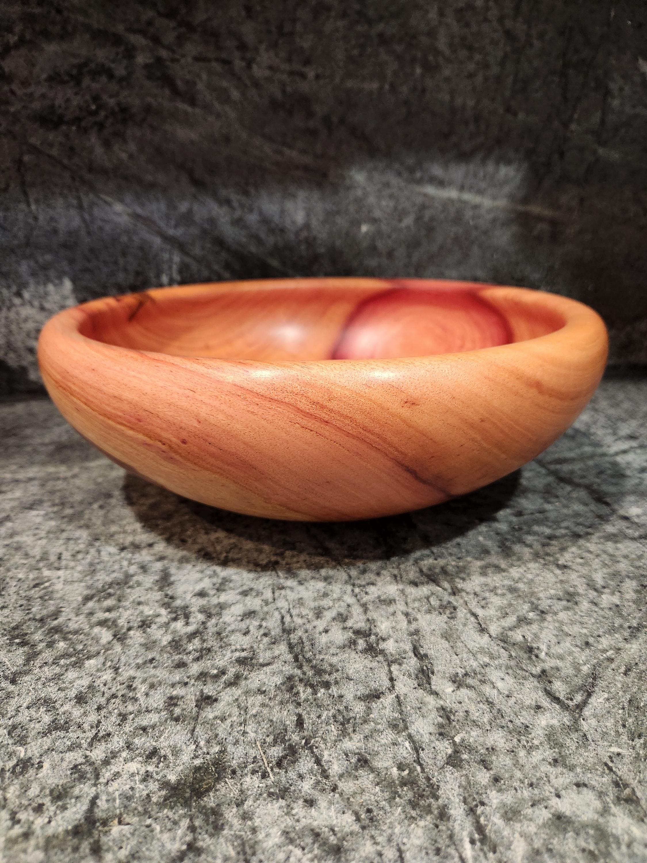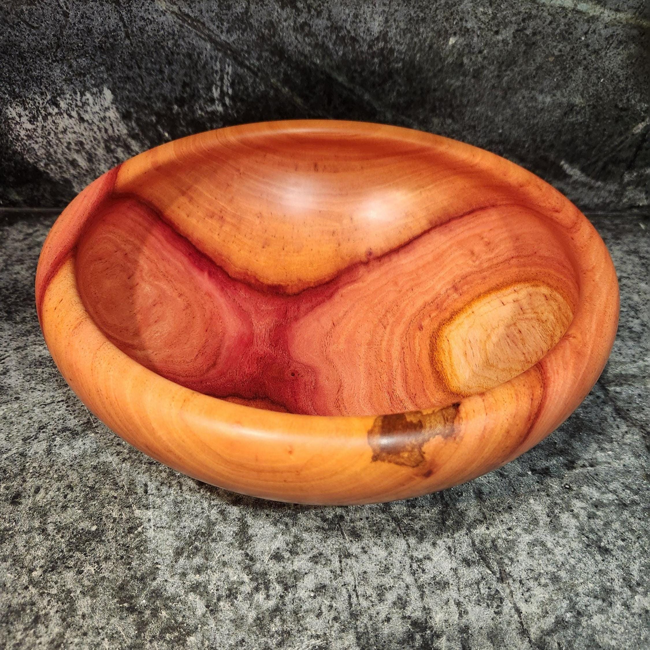 This handcrafted cedar bowl highlights the rich, swirling grain and warm red tones that cedar is known for. Carefully turned on the lathe and finished to a smooth, soft sheen, it’s both decorative and functional. Finish: Tung Oil and Bees Wax Size: 11.5 x 4 Inches 1 of 1