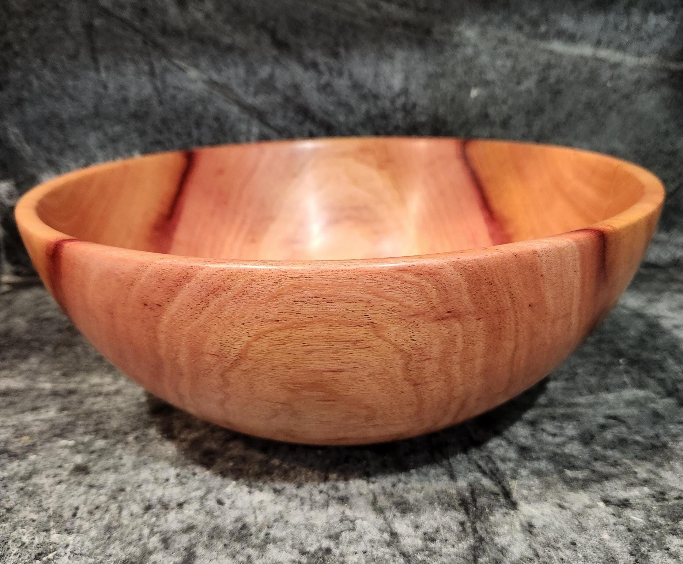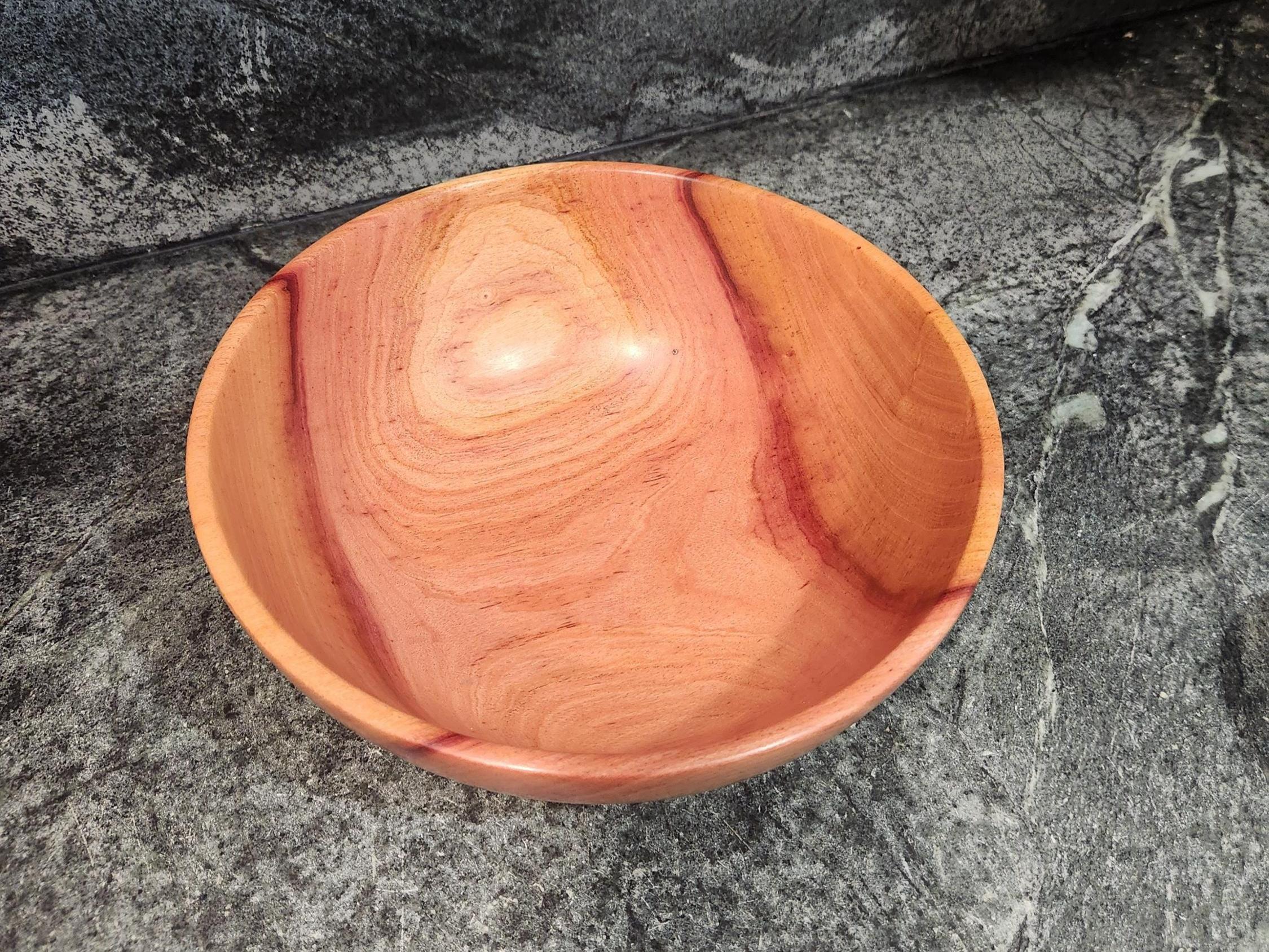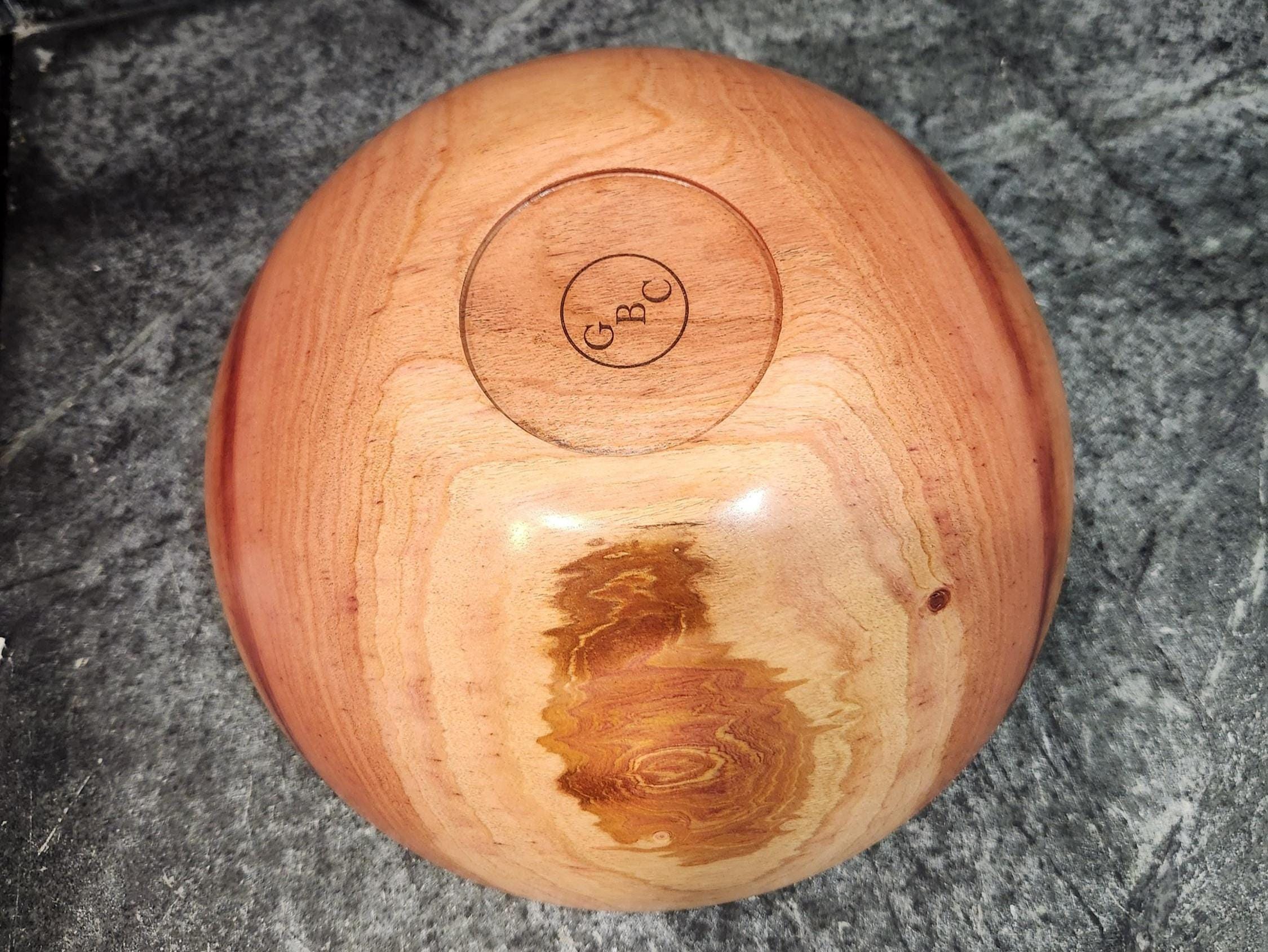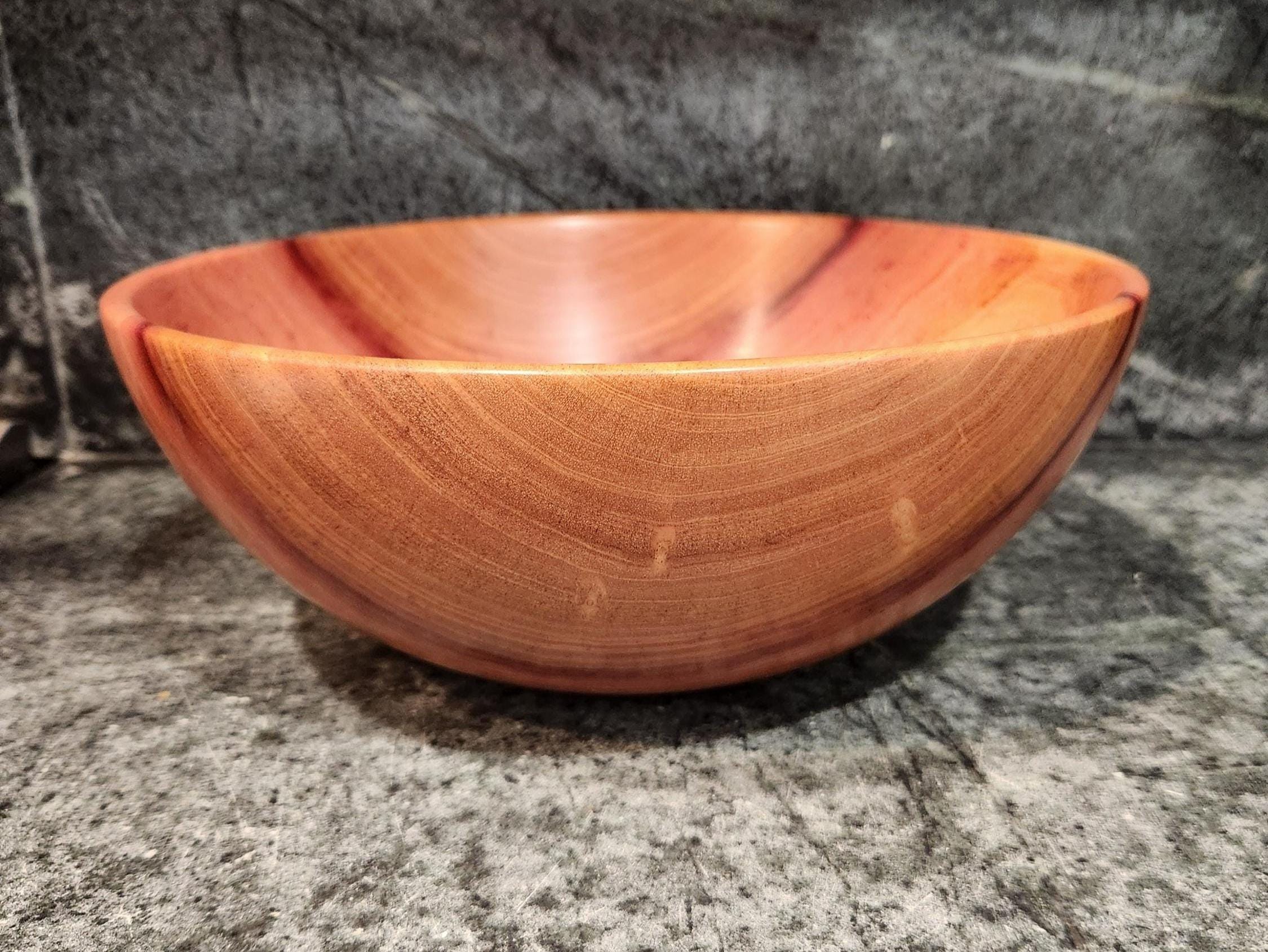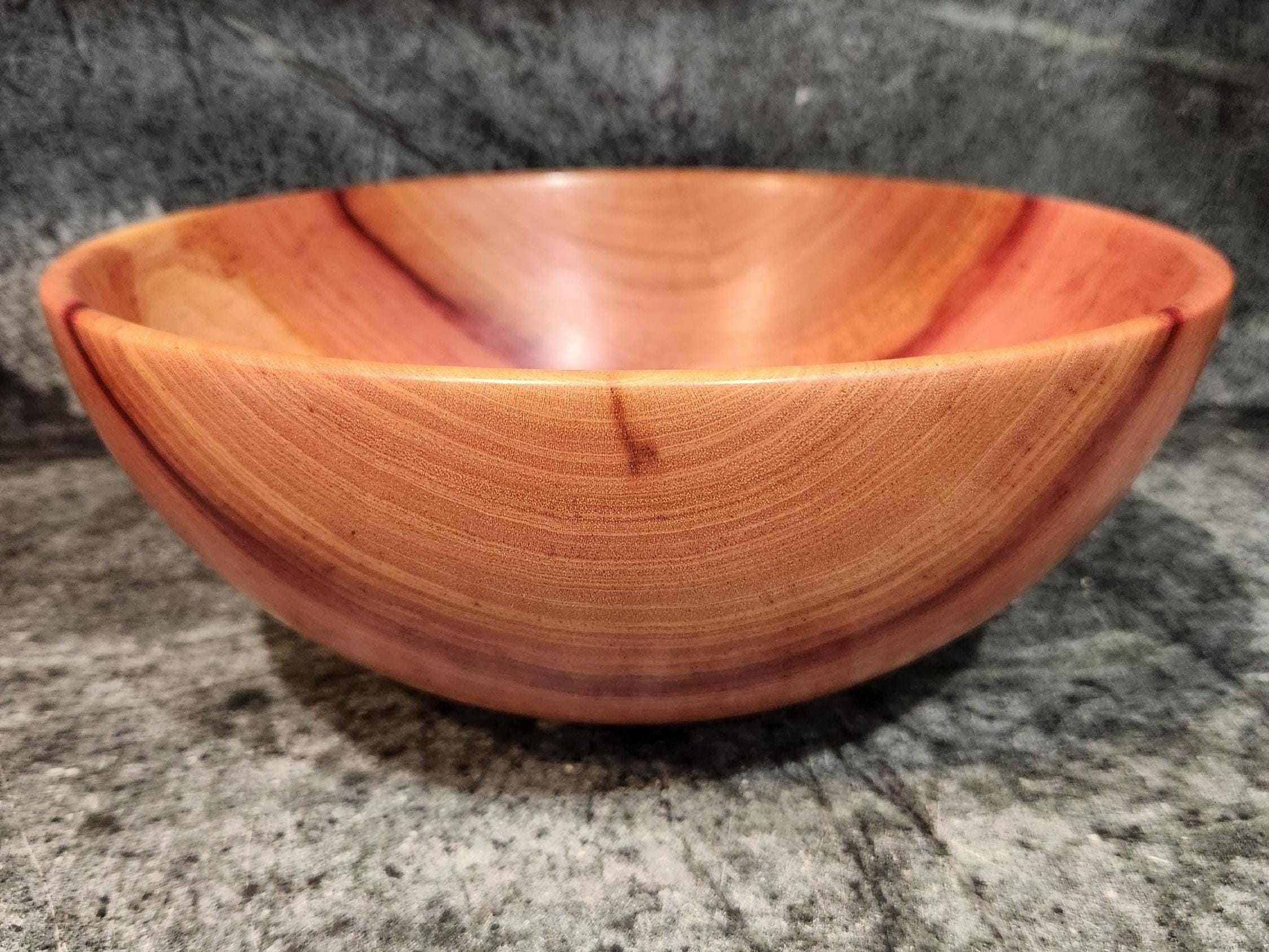 This one-of-a-kind bowl was carefully hand-turned from aromatic cedar, showcasing the natural contrast between creamy sapwood and rich red heartwood. The swirling grain patterns make it as much a decorative piece as it is functional. Size: 11 x 4.25 Inches 1 of 1