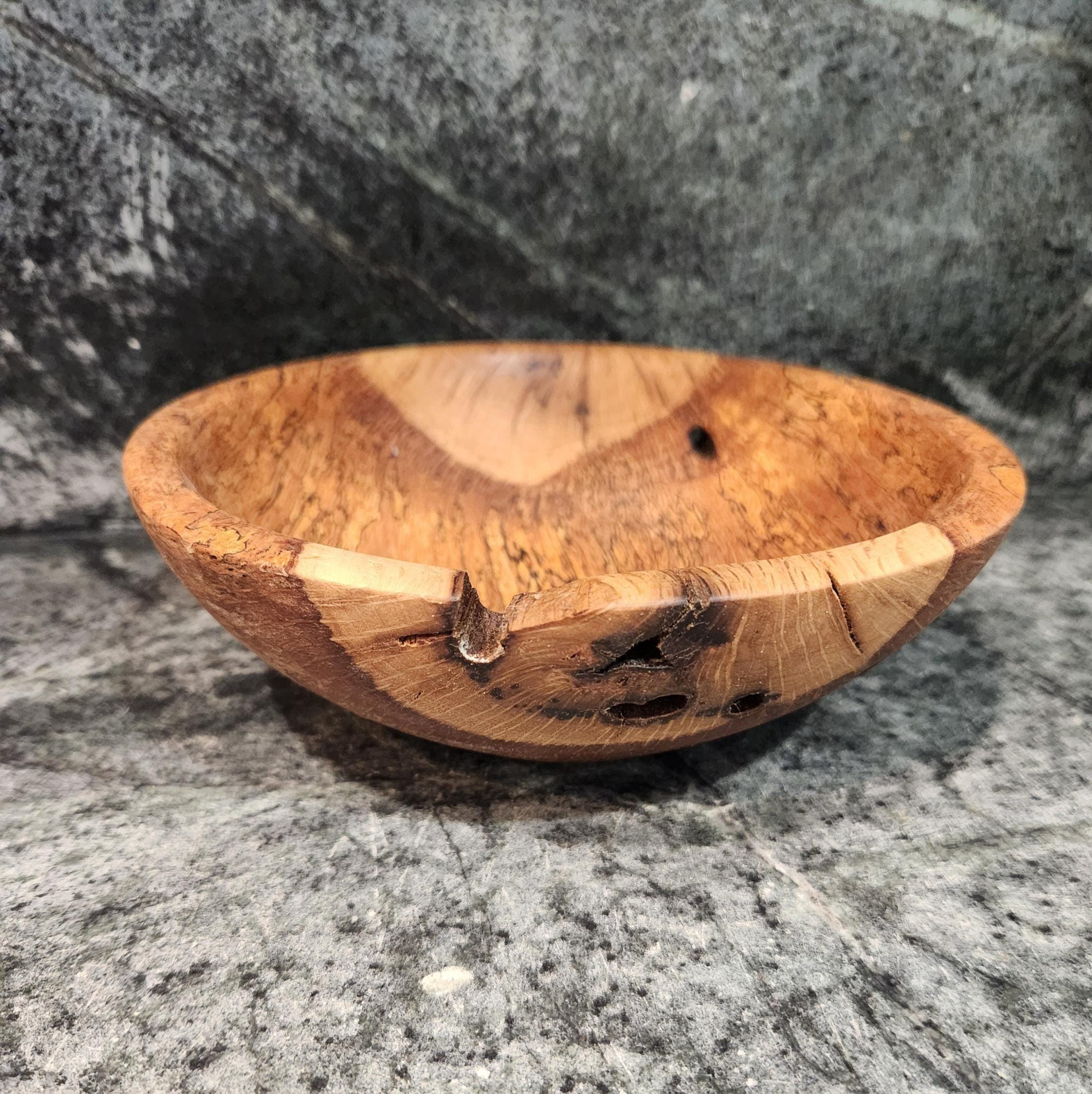Crafted from beautiful spalted oak, this one-of-a-kind bowl shows off nature’s artwork in every grain. The spalting lines, warm tones, and natural voids make it truly unique—no two pieces will ever be the same.