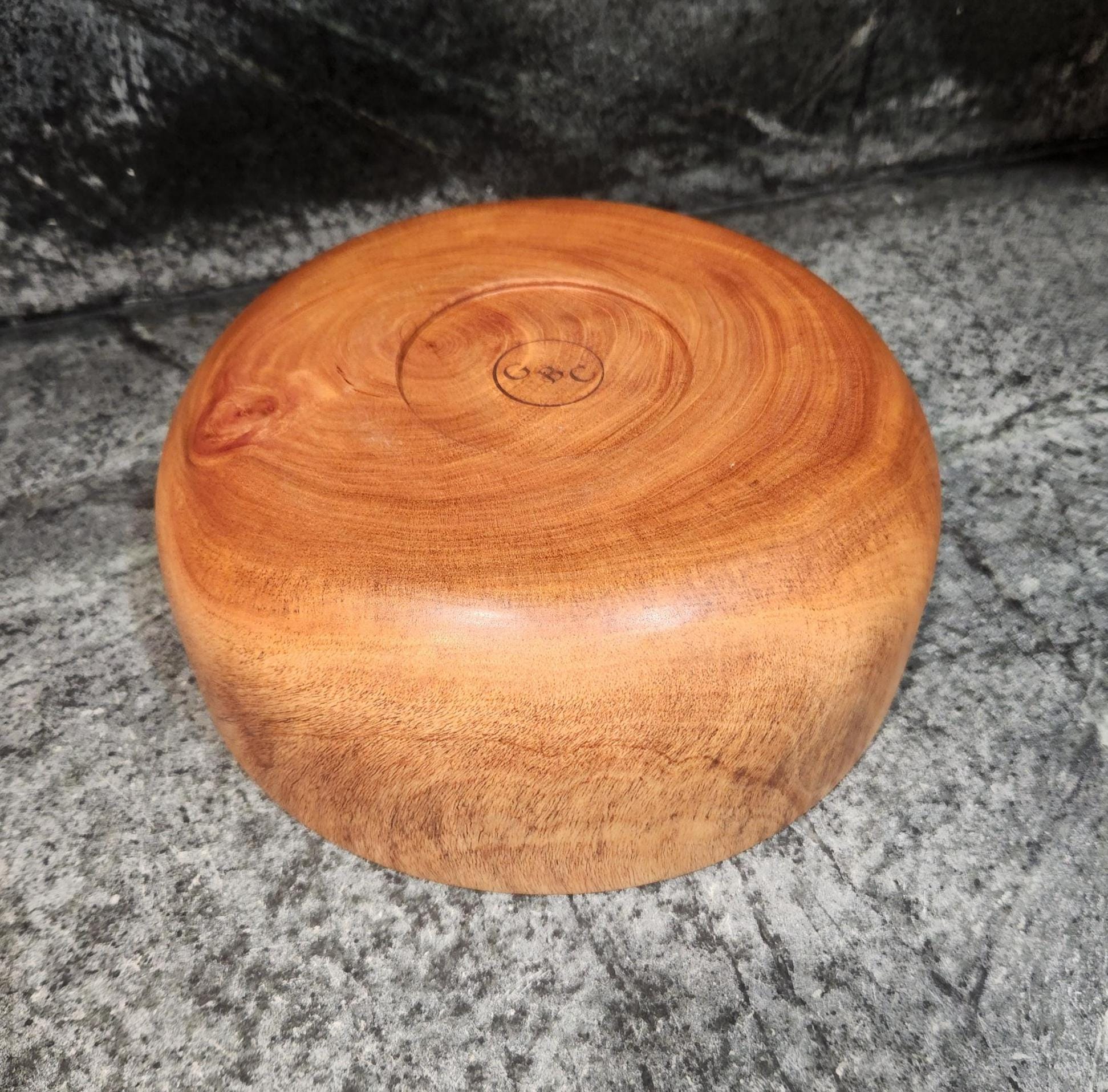This beautiful hand-turned mahogany bowl is a one-of-a-kind piece crafted from rich mahogany wood. Measuring 9.5 inches wide and 3.75 inches tall, it features a smooth satin finish that highlights the natural grain and warm tones of the wood.