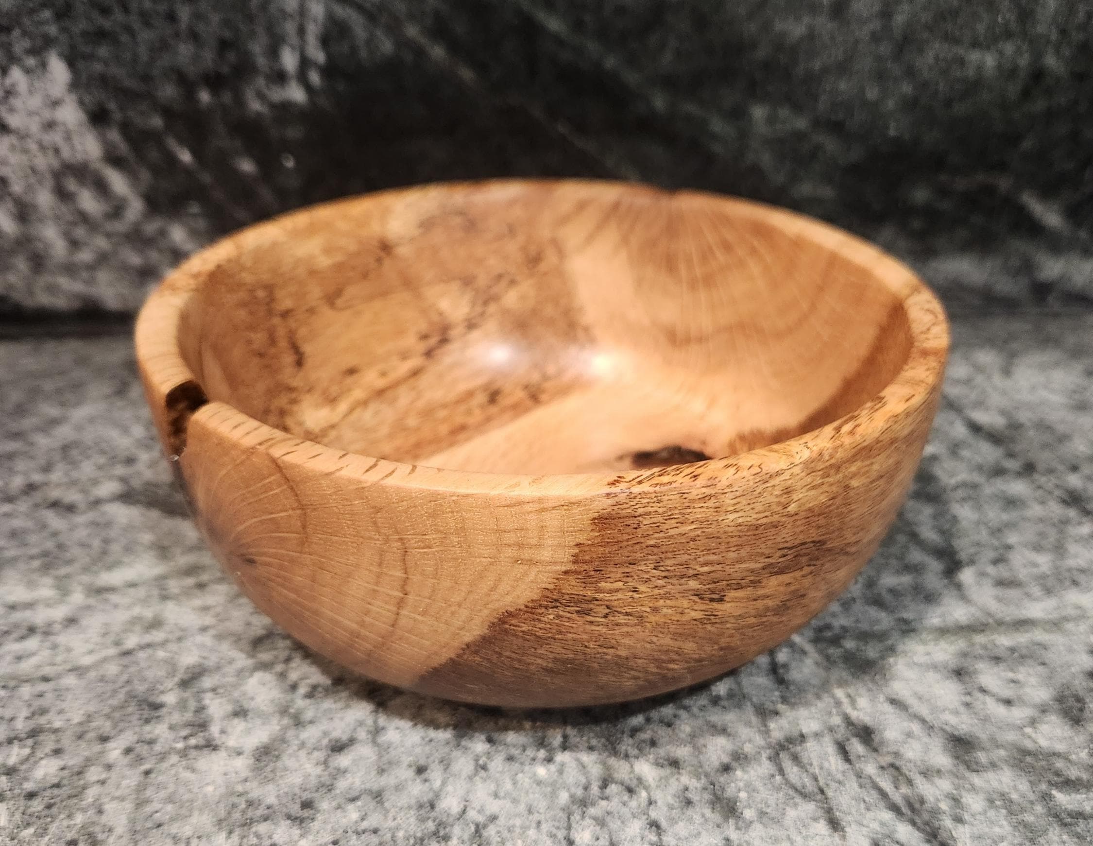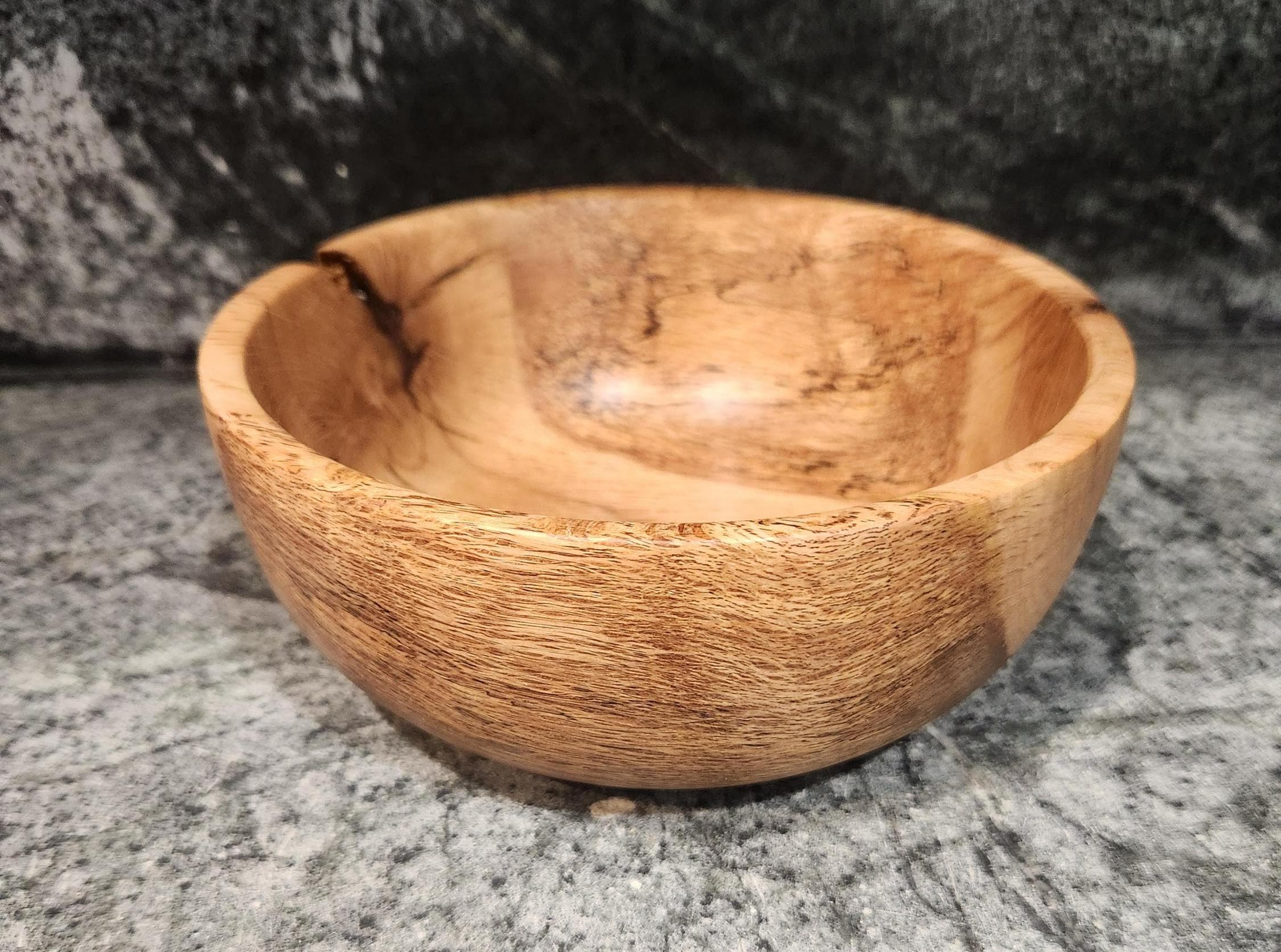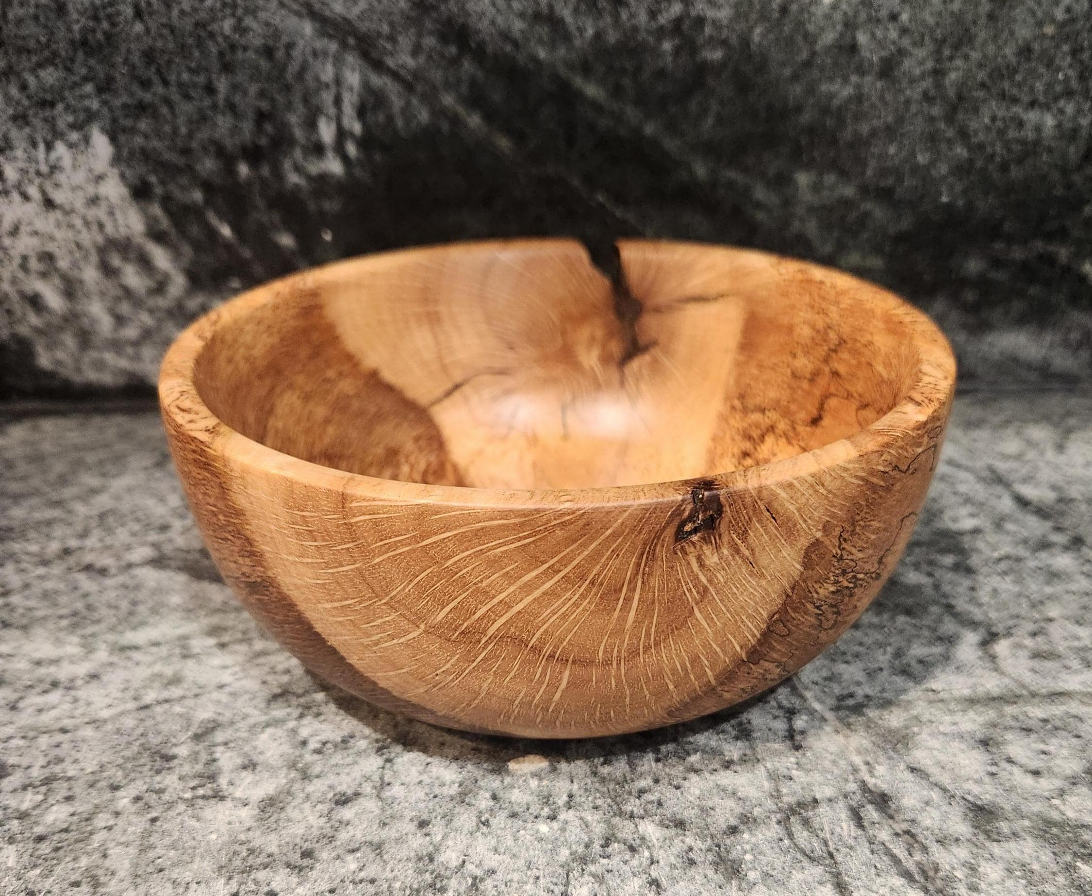 This one-of-a-kind bowl is hand-turned from spalted maple, showcasing striking grain patterns, natural spalting lines, and organic character. Each mark tells the story of the wood’s life, giving this piece a distinctive, rustic beauty.