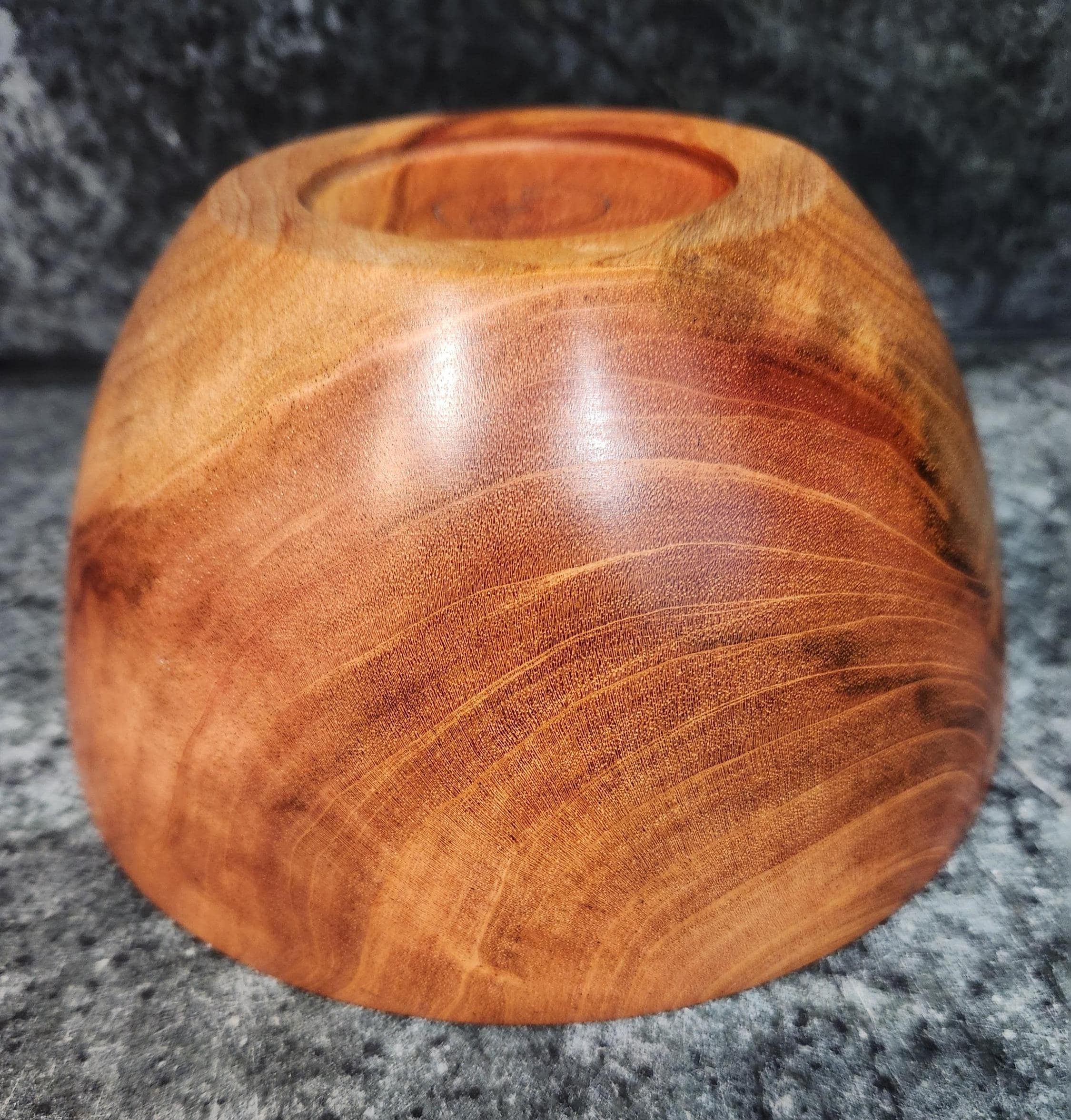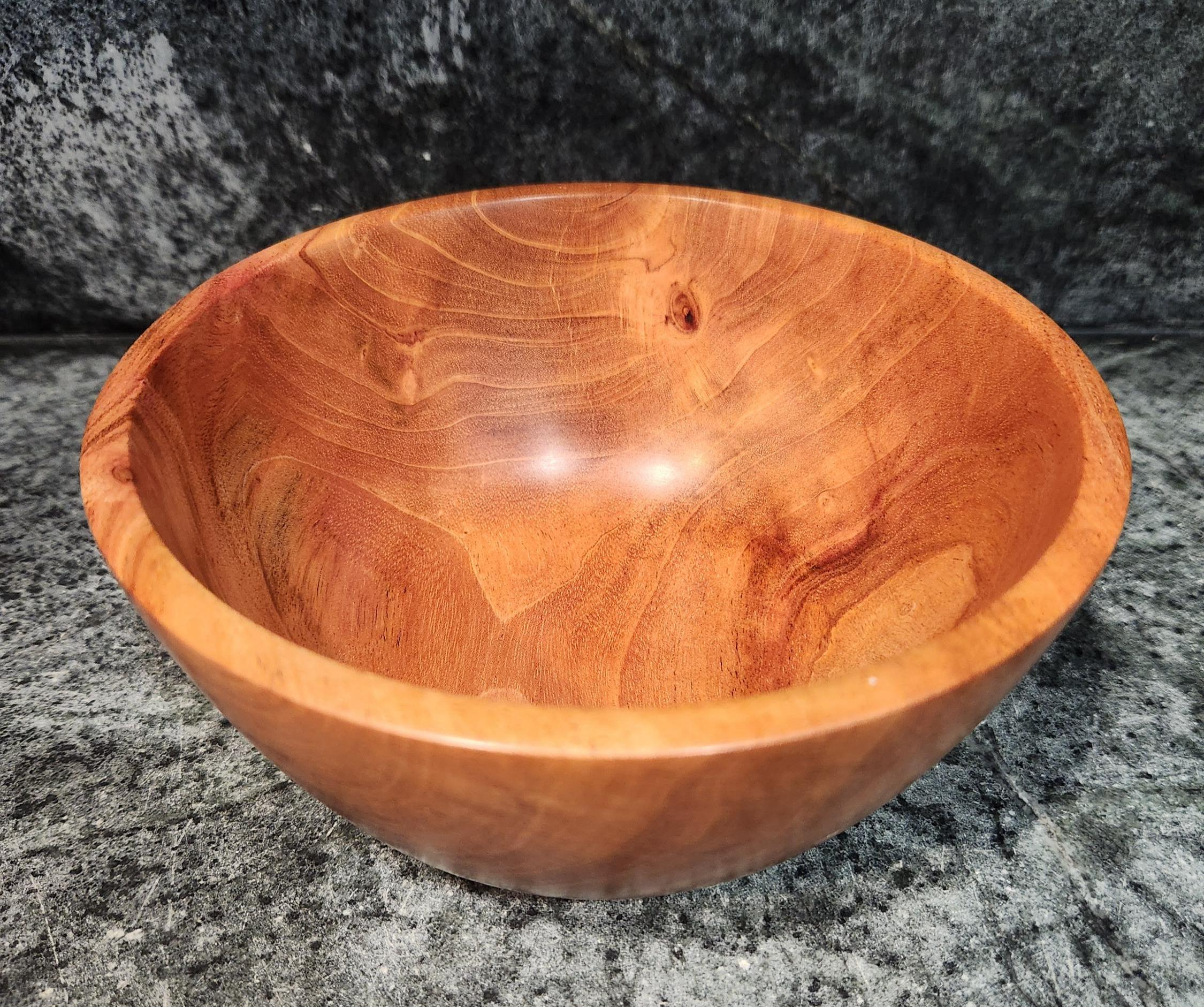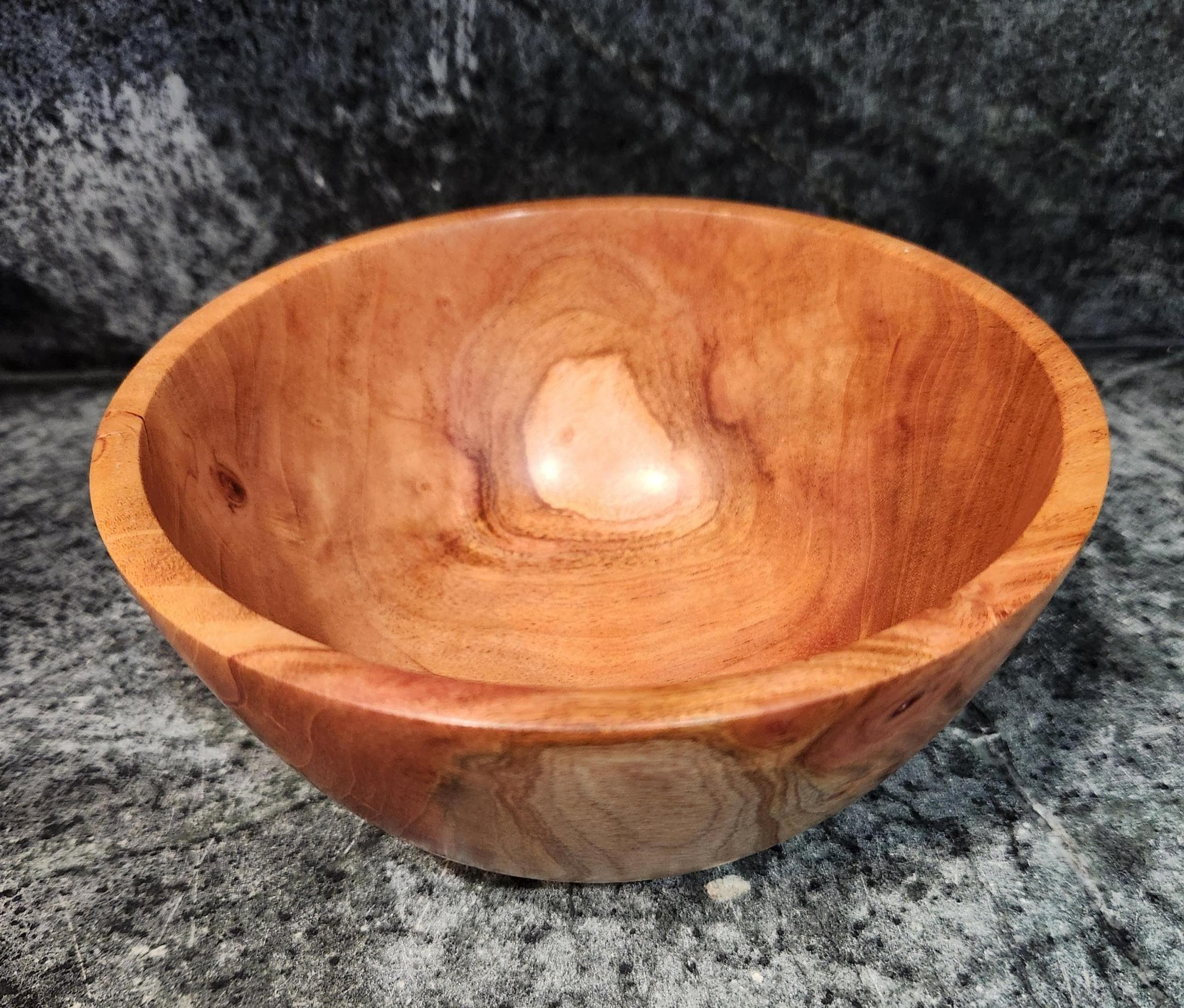 This beautifully hand-turned mahogany bowl showcases rich natural grain patterns and a warm satin finish that highlights the wood’s natural character. Carefully crafted and sanded smooth, it is perfect as a decorative centerpiece, fruit bowl, or catch-all for keys and small items.